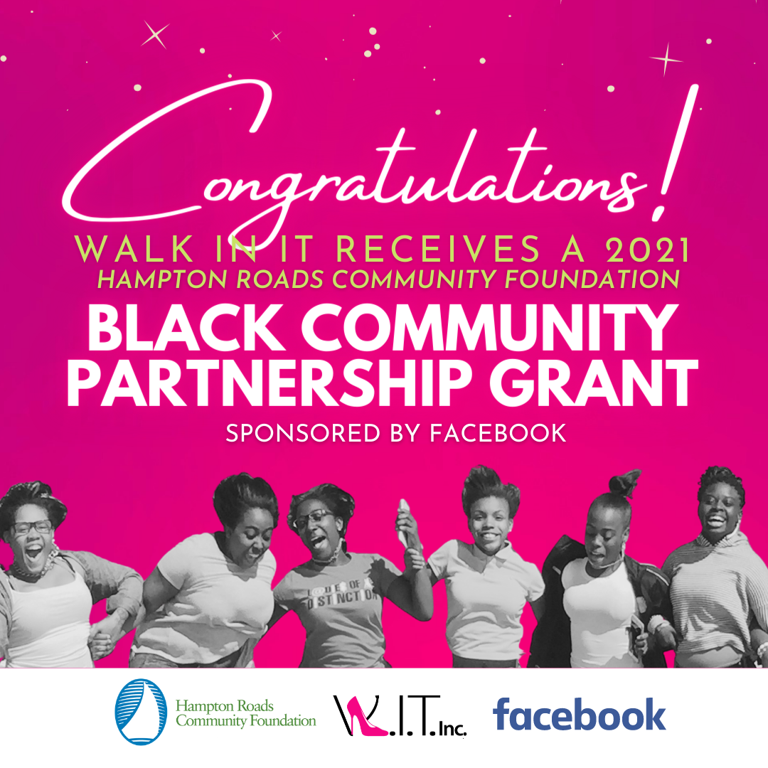 Walk In It Inc. is excited and about receiving a Black Community Partnership Fund Grant from the Hampton Roads Community Foundation in partnership with Facebook. Stay tuned for exciting updates!